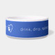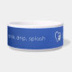 The design has a sleek 'drink, drip, splash' theme, symbolizing the joy of pet ownership. The background features a cool, modern gradient that ranges from azure to medium blue. Whether they're eating their dog food or drinking water, this durable, high-quality dish makes a delightful pet accessory for any home. It's a thoughtful dog mom or dog dad gift for birthdays, holidays, or any special day.