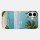 A serene tropical cove with turquoise water and white sand under a bright sky. Ideal for refreshing summer phone cases.