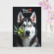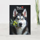 This card features a close-up portrait of a dignified dog with piercing blue eyes that meet the viewer with a steady, affectionate focus ❤️. Deep brown, crisp white, and creamy fur create a balanced pattern across its face, giving it a polished studio look. The background is a rich, velvety black, making the muzzle and eyes stand out as if lit for a quiet, late-night photo session. Soft, focused lighting brings out the plush texture of the coat and the gentle curve of the nose, like a tender moment held still. A leafy branch dotted with glossy green olives rests carefully in the dog’s mouth, adding a sweet, teasing hint of romance. In the upper left, the message “Olive you Great-Grandma!” appears in flowing red lettering, with a small red heart tucked beside the words 🌼. The olives catch tiny highlights, and the branch angles diagonally across the lower part of the face against the dark backdrop.