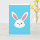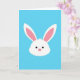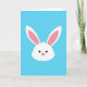 Designed with a minimalist portrait style, this card centers on the head of a springtime bunny 🐰 against a wide, bright blue background that feels like open sky. The bunny’s white face sits in the upper half, leaving plenty of airy space around it for a calm, affectionate mood. Long ears reach upward, with soft pink filling the inner ear areas like a gentle blush shared between close friends. Tiny black dot eyes and a small pink round nose give the expression a sweet, attentive look, as if it’s quietly listening. Any greeting text would sit neatly in the lower portion, standing out best in white or soft pink against the blue. The simple shapes keep everything focused on the tender face and the soothing colors 🌷. The overall layout stays uncluttered, with the bunny’s ears nearly touching the top edge and the smooth blue field stretching to all sides.