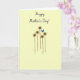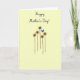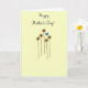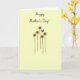 A warm message of Mother’s Day sits on a soft, creamy yellow background, giving the scene a gentle, sunny glow 🌼. In the middle, five slim brown stems rise close together like wildflower heads, each topped with a small burst of tiny spokes that feels quietly affectionate, as if gathered for someone special. Above the flowers, a small insect with bright blue wings outlined in black hovers near the top center, adding a lively touch that draws the eye ❤️. The stems and blooms keep an earthy, simple look that balances the brighter blue accent. The words “Happy Mother’s Day!” appear near the upper center in flowing cursive-style lettering, set in a dark brown tone that matches the plants. The text sits comfortably above the floral cluster, leaving open space around it so the design feels airy and calm. A thin brown border runs around the edges, neatly framing the yellow field and the central bouquet.