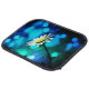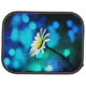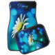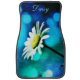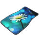 Colorful blue and green lights surround this daisy on these Car mats you can personalize