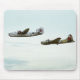 Photo of a B17 and a B24 flying side by side in a blue sky with scattered clouds.