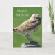 Burrowing Owl Birthday Card. When I was a kid, forty plus years ago, these cute little owls where found all over the prairies. They don't actually burrow themselves, they take over abandoned badger holes. Unfortunately DDT contamination in the seventies and eighties and loss of nesting areas to farming has made them a rare sight.