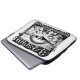 The sleeve is made of nice feeling material and seems very durable. I'm not sure how easy it'll be to clean, but the construction seems sound and the fabric is quick thick. I also like the double zipper. The printing is lovely and appears durable. The white on black contrast is nice, and the design very elegant.