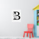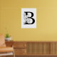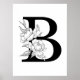 Elegant B letter monogram poster with flowers and lives. Black and white botanical illustration. Initial letter poster nurseries, bedrooms, part of home decor. Personalized gift idea.