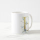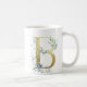 Letter B, gold initial with blue watercolour foliage initial mug. © Julie McIver
