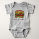 Alphabet letter fun! Baby suit design features an original marker illustration of a cheeseburger, with B IS FOR BURGER in a fun font.