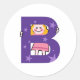 Illustration of a cute little cartoon girl climbing over a giant letter B. Image available on various gifts and products. Stickers.