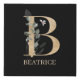Letter B monogram floral. Letter B in golden brown texture accented with green watercolor compound leaves and berries and gold dust. Personalized with name in matching font.
