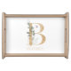 Letter B monogram floral. Letter B in golden brown texture accented with green watercolor compound leaves and berries and gold dust. Personalized with name in matching font.