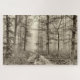 B&W Forest with morning fog behind the trees Jigsaw Puzzle