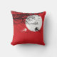 B&W Oriental Swallows Moonlight Tree Branches Throw Pillow