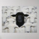 A striking black sheep stands out among a flock of white sheep, symbolizing individuality and uniqueness. The textured brushstrokes and vibrant contrast create an impactful and thought-provoking composition.