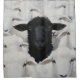 Rendered with rich texture and expressive detail, the piece balances softness and strength. The surrounding white sheep form a uniform backdrop, amplifying the presence of the central figure without aggression or chaos. Rather than conflict, the image conveys calm self-assurance—an unspoken statement about embracing uniqueness without the need to conform.
