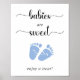 Cute enjoy a treat poster sign for your baby boy shower with "babies are sweet" written in a mix of modern typography and a stylish script with swashes, and a pastel blue watercolor of baby feet.