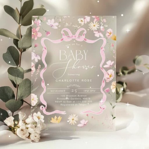 Babies in bloom Pink Bow Twin girls baby shower Invitation