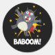 Baboom Funny Exploding Baboon Pun Dark BG Classic Round Sticker