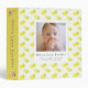 This cute binder features a baby's photo with baby's full name with birth date, time, weight and length on white background with light yellow floral / flower patterns. The spine features flower swags on yellow background. Add baby's photo, change the color of the spine and personalize it for your needs. Perfect gift for new born baby or baby shower. You can find matching products at my store.