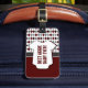 Oversized elegant argyle pattern in school colors of maroon and gray set the backdrop for this cute baby ID tag design. A white baby bodysuit on the front states that you have the best baby ever, while the back includes your child's name and parents' contact information. Design comes in maroon and gray, burnt orange and gray, red and black, green and black, orange and navy, green and yellow, and purple and gray. Matching products available.