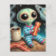 A beautiful little baby alien in striped pjs eats bacon and has coffee for breakfast AI generated art