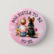 Big sister to be baby shower buttons. Sweet baby girl sitting next to her little puppy German Shepherd in a patch of pretty watercolor flowers. Pink and blue butterflies and pretty wildflowers.