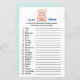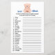 The "Baby Animal Naming Game Sheet" is an adorable baby shower activity where guests can showcase their knowledge of the animal kingdom. It features a list of 20 animals, and participants must write down the term for each animal's baby. At the top, a cuddly teddy bear image sets the baby-friendly theme. This game is not only a delightful challenge for animal lovers but also a sweet nod to the guest of honor's little one on the way. It's a perfect icebreaker and a great way to add some educational fun to a baby boy's shower celebration.