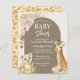 Baby lion and baby giraffe safari animals yellow gold brown boho dried flowers baby shower budget invitation template.