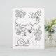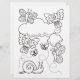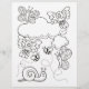 A spring scene with baby animal cartoons, butterflies, birds, bee and a snail, line art for coloring book page.