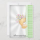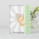 Cute green gingham baby announcement with a soft frame for your new baby photo - silky look background and a cute bear on the front.