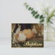 Baby Baptism Gold Decor and Typography Overlay Announcement Postcard