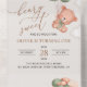 Invite friends and family in style and set the tone for your special day with this charming birthday invitation. Design features teddy bear with green balloons on beige background.