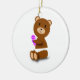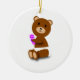 An adorable diaper wearing baby bear holding a purple and pink rattle makes this ornament perfect for a baby's 1st Christmas or anyone who enjoys cuteness