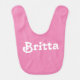 First of all, the shipping was fast. This bib was everything I had hoped for. It has such a smooth feel to it and is machine washable. The colors are vivid and the image quality is just as pictured on the web. Will be happy to give this as a New Baby gift !