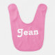 First of all, the shipping was fast. This bib was everything I had hoped for. It has such a smooth feel to it and is machine washable. The colors are vivid and the image quality is just as pictured on the web. Will be happy to give this as a New Baby gift !