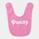 First of all, the shipping was fast. This bib was everything I had hoped for. It has such a smooth feel to it and is machine washable. The colors are vivid and the image quality is just as pictured on the web. Will be happy to give this as a New Baby gift !