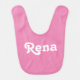 First of all, the shipping was fast. This bib was everything I had hoped for. It has such a smooth feel to it and is machine washable. The colors are vivid and the image quality is just as pictured on the web. Will be happy to give this as a New Baby gift !