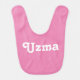 First of all, the shipping was fast. This bib was everything I had hoped for. It has such a smooth feel to it and is machine washable. The colors are vivid and the image quality is just as pictured on the web. Will be happy to give this as a New Baby gift !