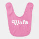 First of all, the shipping was fast. This bib was everything I had hoped for. It has such a smooth feel to it and is machine washable. The colors are vivid and the image quality is just as pictured on the web. Will be happy to give this as a New Baby gift !