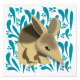 The fourth in the series of Baby Australian animals, this print features a baby bilby against a blue green background of eucalyptus leaves and gumnuts.