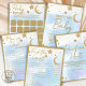 Baby Bingo Baby Shower Game! Set against a whimsical cloud background, this baby shower games features gold moon and stars. This is a perfect design for gender neutral baby showers and more! Coordinating baby shower invitations, decor, and signs also available.