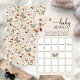 Baby Bingo Game. Looking for a unique bohemian vibe to impress your friends and family? Chic and stylish, this beautiful color palette of tan, brown, rust, terracotta, and burnt orange is the trending theme for this year's baby showers. Rustic dried grass, leaves, and vintage wildflowers are stunning details to add to your modern boho-chic baby shower. All stationery is professionally designed by Painted Paperie.