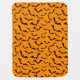 Baby blanket is shown in a festive Halloween bats print.