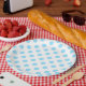 Baby blue and white polka dots paper plates