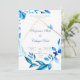 wedding invitation to announcement the wedding detail such as day and place it colored by blue gradient to enhance the wedding place residence and decorated with petal to beautify it