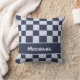 Do you know a little guy who has recently joined your circle of friends and family? This baby nursery pillow features a square pattern quilt design in alternating dark and light blue colors and is personalized with the special little guy's name. The square pattern fills the front of this pillow along with a matching banner for the baby's name. The back of the throw pillow is solid blue leaving plenty of room for additional text or photos.