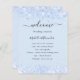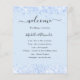 A baby blue background decorated with confetti, sparkles. Personalize and add your names and wedding details. Black colored letters. If you have more text it's possible to reduce the line space.