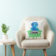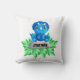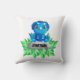 This is an adorable baby pillow for a baby boy with an illustration of a baby blue dinosaur sitting on a rock. This would make a great decoration for a nursery or kid's room and to make this even more special, it can be personalized by changing the name on it.