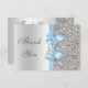 Personalized formal custom Thank You flat note cards for any event - weddings, baby showers, birthday party, sweet 16, Quinceanera celebrations, engagements, bridal shower etc. Elegant custom silver and baby blue colors double sided thank yous with a beautiful sparkly printed glitter, rhinestones, sequins pattern, cute shiny printed vector bows and ribbons and pretty, stylish printed image diamonds bling jewels and dark grey text. These classy glamorous, fashionable silver and blue colour cards are decorated on both sides. Beautiful, chic, trendy, modern double sided cards with glitz and glamour. I have matching products in my store. Text, font and colors of font are all personalizable / personalisable to meet your needs. If you need assistance customizing your product please contact me through my store. I will be happy to help.PLEASE NOTE:- These are flat printed images - not real bows, diamonds or sequins.