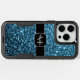 Baby blue sparkles Monogram iPhone 15 Case. Personalize with your initial and name. Trendy OtterBox phone case with Beautiful girly glamorous light blue shiny glitters sparkles. Photo of blue sparkles glitter!